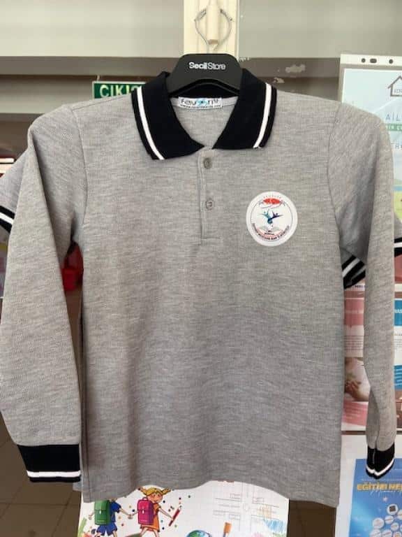 · KIŞLIK SELANİK PAMUKLU KUMAŞLARDAN İMAL, UZUN KOL , POLO YAKA, GÖVDE GRİ, YAKA LACİVERT